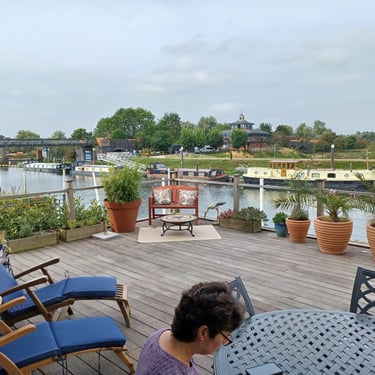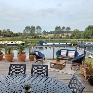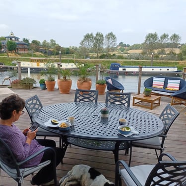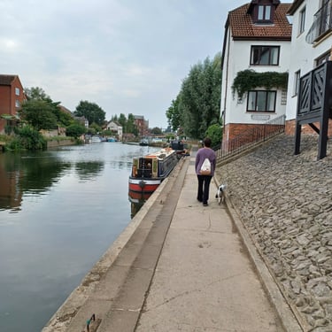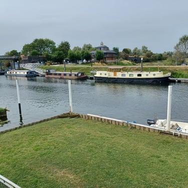 We found a last minute Pet/House sit from August 31st to Sept 5th in Tewkesbury which was about 25 mins from our Worcester House sit. It was for a Spaniel called Ludo and the home was situated right on the banks of the River Avon. The River Avon joins the River Severn by a Lock just up river from us. We were located next to the Marina.