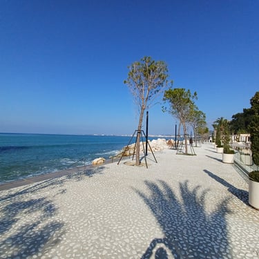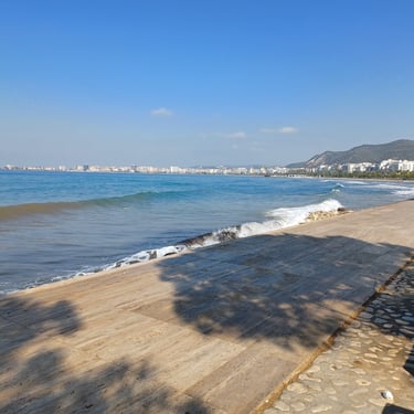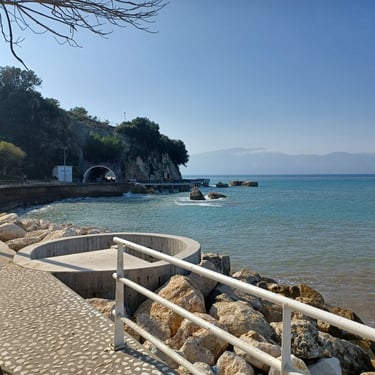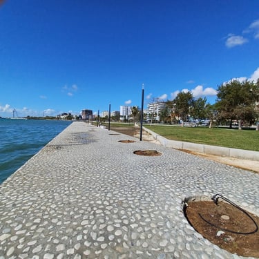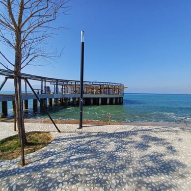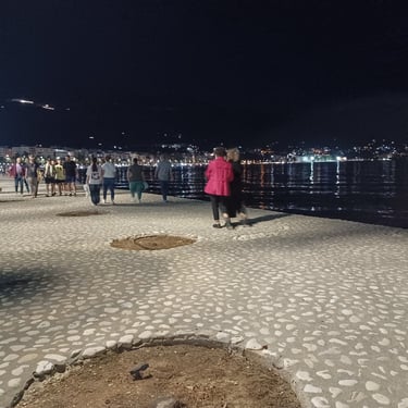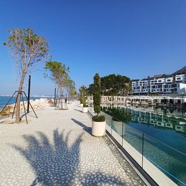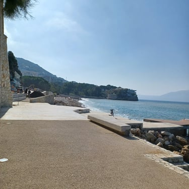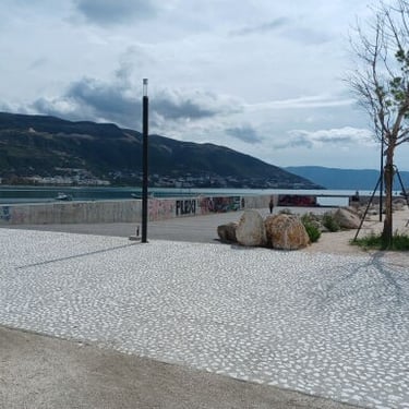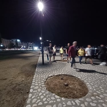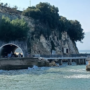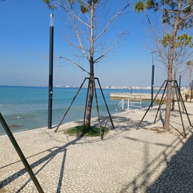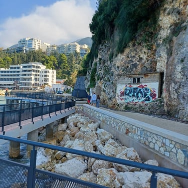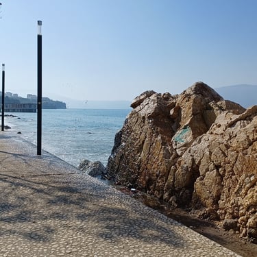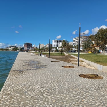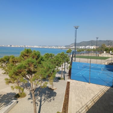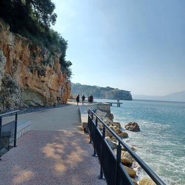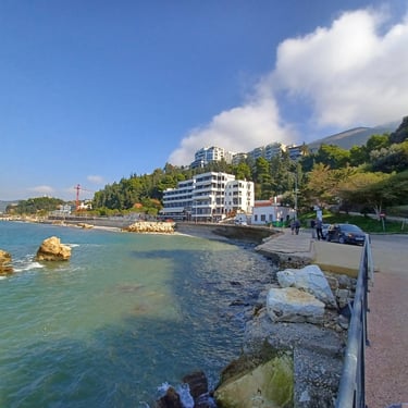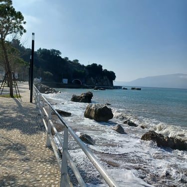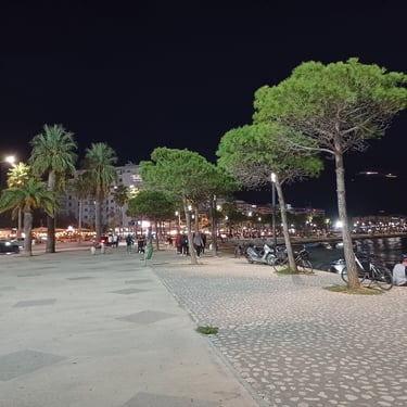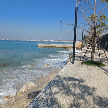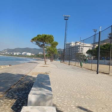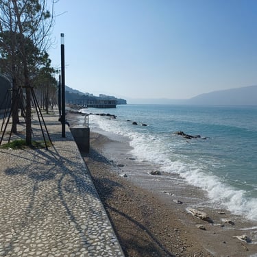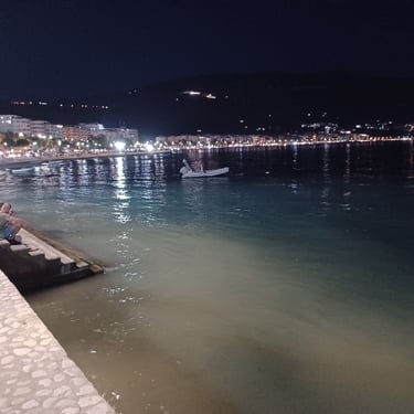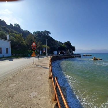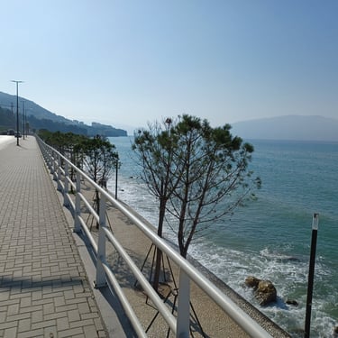 If you go to the map above, zoom in to the Lungomare Seafront pROMANADE, the Apt block is just across the road and north ...up the road from Novus Traditional Restaurant, past the Luxe Market HASO & bar and just around the bend after the Adriatik Restaurant... on the same side... - got that? :)