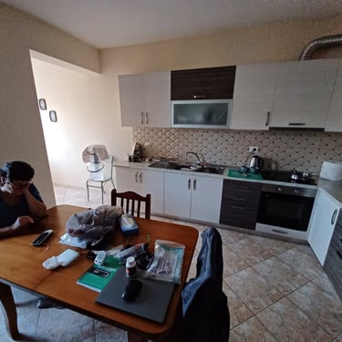 There are 3 restaurants right near us...Italian Pizza and Pasta right outside our building entrance, a traditional Albanian restaurant called Adriatik and another local cuisine restaurant, Novus Traditional Restaurant as well as two bars less than 100yds. The nearest supermarket, a local Haso chain is less than 50yds.