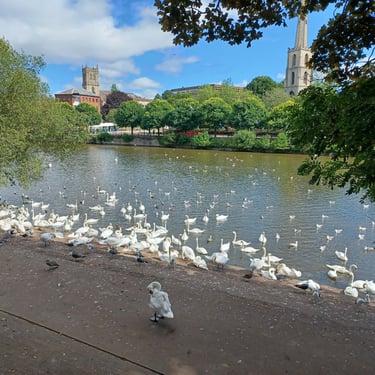 There is a weir and a couple of large Locks at Digless which we walked around a few times. The modern foot bridge at the bottom of the path from the Industrial Estate gets you over to the east side and you can walk up to the Cathedral and cafes that side. The other side has more benches if you are tired and goes up to the Swan Sanctuary and all the way up to Worcester Cricket Club. You can cross the road bridge there to get into Worcester to the old China Museum and other attractions.