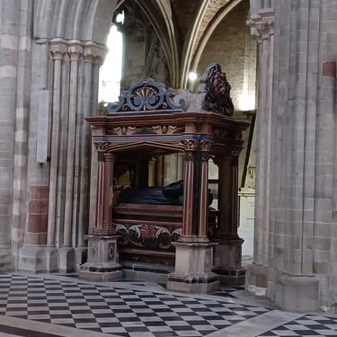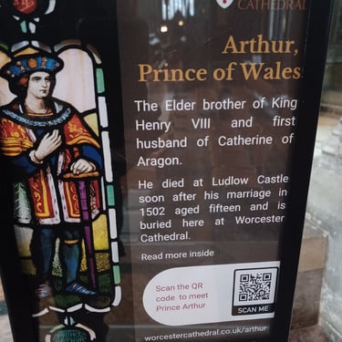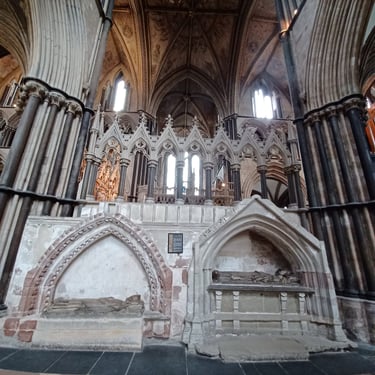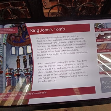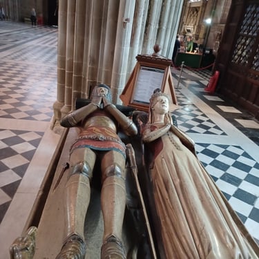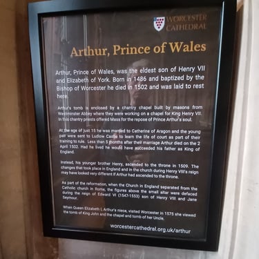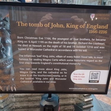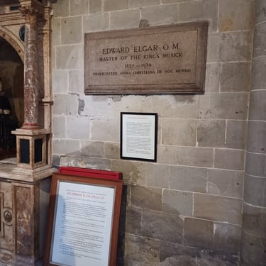Worcester Cathedral has two royal burials - King John (died 1216 - of Robin Hood era) and Prince Arthur Tudor (died 1502). King John's tomb can be found in front of the High Altar and Prince Arthur's Chantry just to the right of the High Altar. Edward Elgar, English composer is also buried here. To see a list of all famous people buried at Worcester Cathedral since 992AD, click HERE.