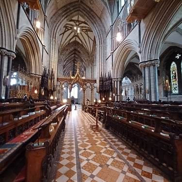 The Cathedral was home to a Benedictine order of monks before the Reformation and the medieval cloister and Norman Chapter House are still in use today.